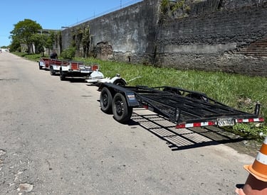 Todos os reboques são produzidos com estrutura 100% galvanizada, madeiramento tratado, amortecedores novos e pneus zero, garantindo durabilidade e segurança.